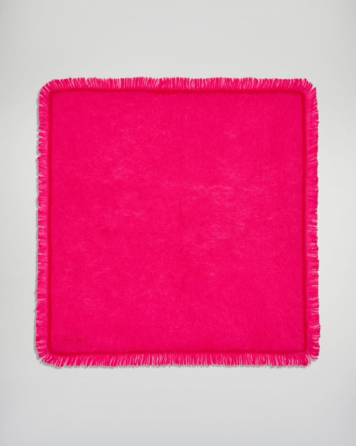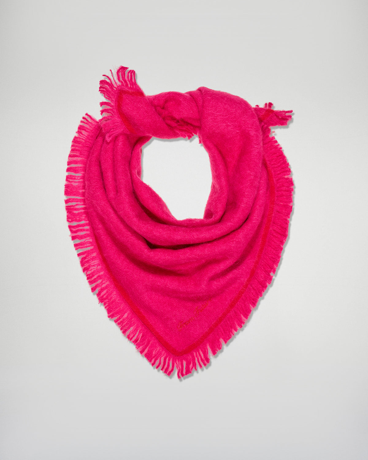 Regular Brushed Cashmere Scarf with Contrast Stripe - 100% Cashmere - GCS Verified  - Raspberry Pink
