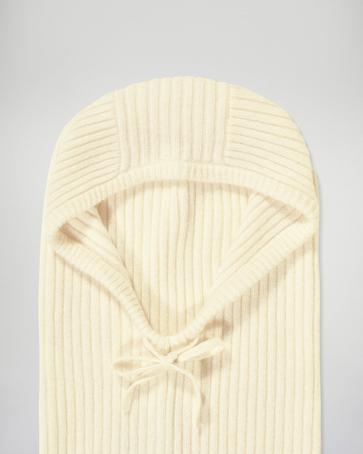 Stay warm and chic with this cozy cashmere hood. The ribbed knit and adjustable drawstrings make it a versatile piece for any winter outfit.