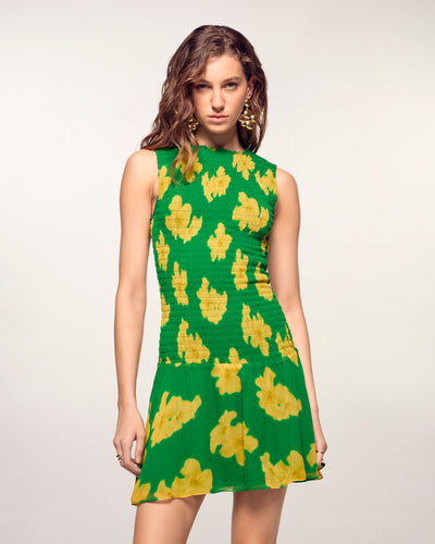 A must-have of our Brazil-themed summer collection, this sleeveless short dress is crafted from fluid viscose. It stands out with its fully smocked top that highlights the silhouette before flaring slightly at the bottom.