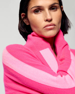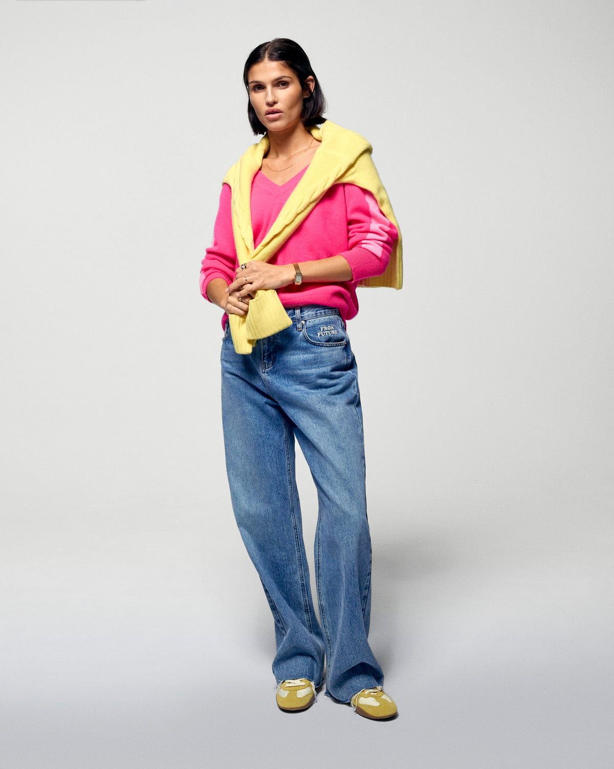 V-Neck Sweater - 100% Cashmere - GCS Verified  - Solar Pink