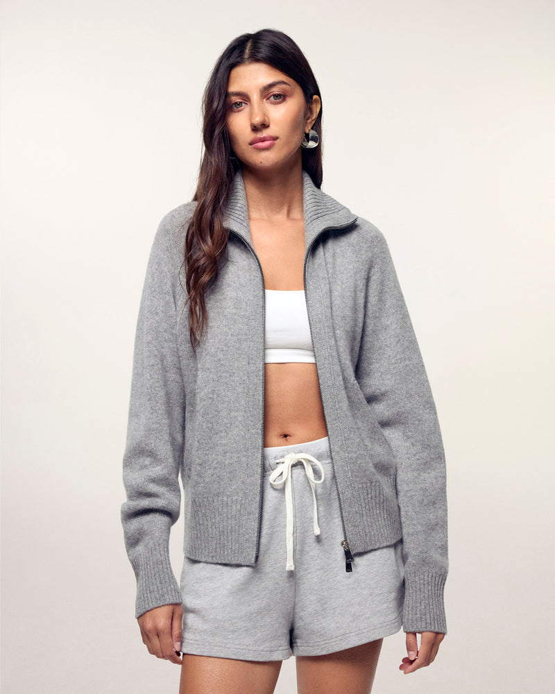 Two-way Zip-up Cardigan - 100% Cashmere - GCS Verified - Dark Heather Gray