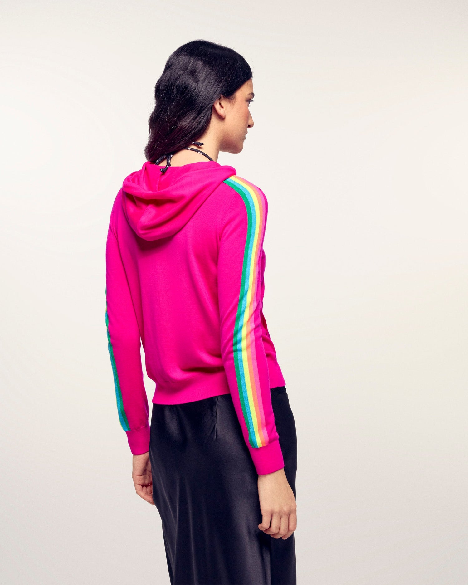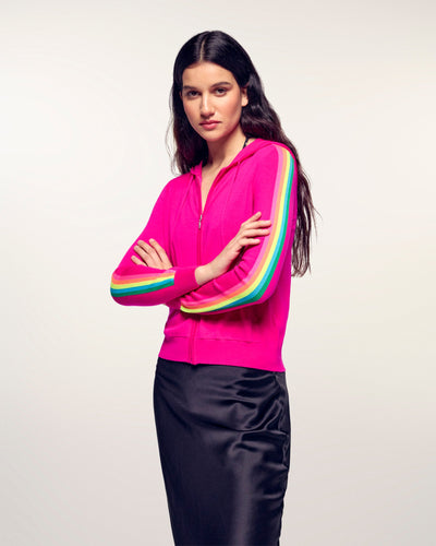 Multicolored Striped Hoodie Sweater - 100% Merino Wool - RWS Certified - Tropical Raspberry