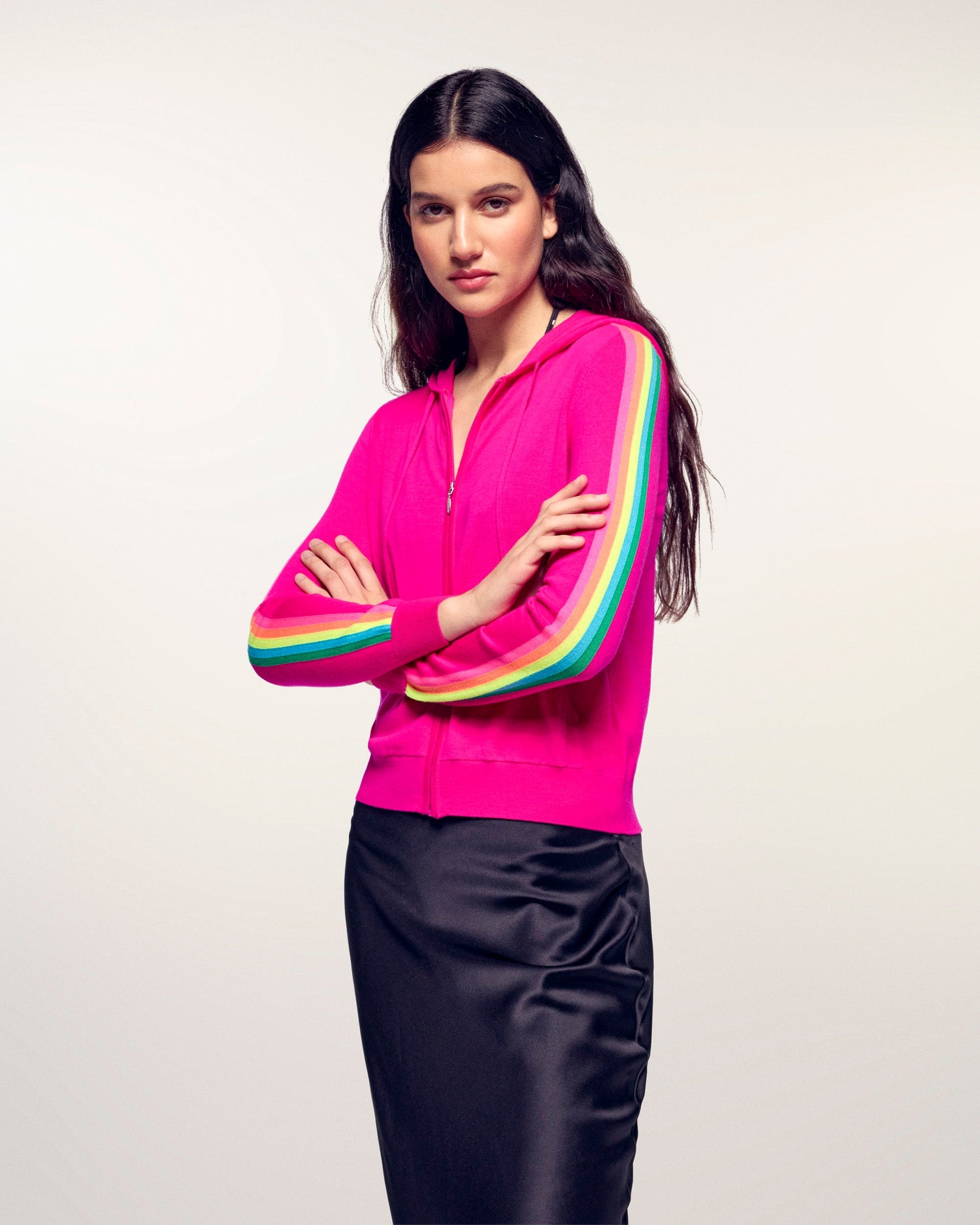 A soft and fluffy knit for this hoodie sweater crafted from 2-ply merino wool. Featuring a hood and a zipped closure, multicolored stripes run along the sleeves, the signature of the From Future look. Complete your look with loose jeans or straight-leg trousers.