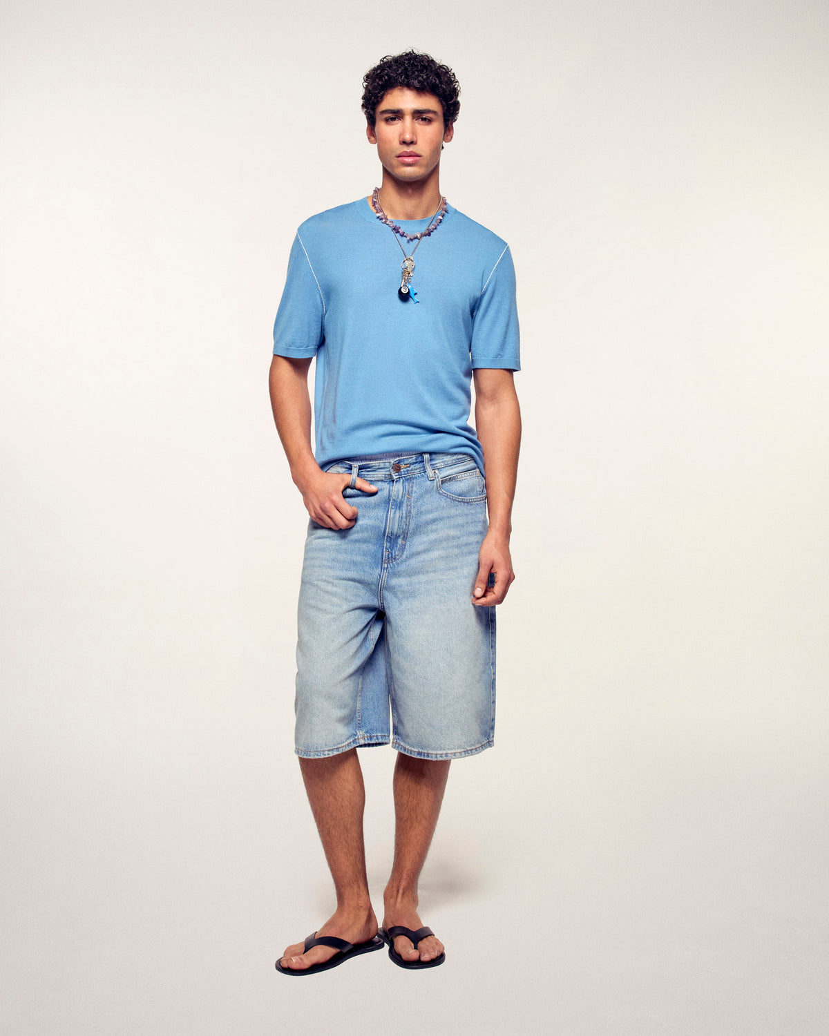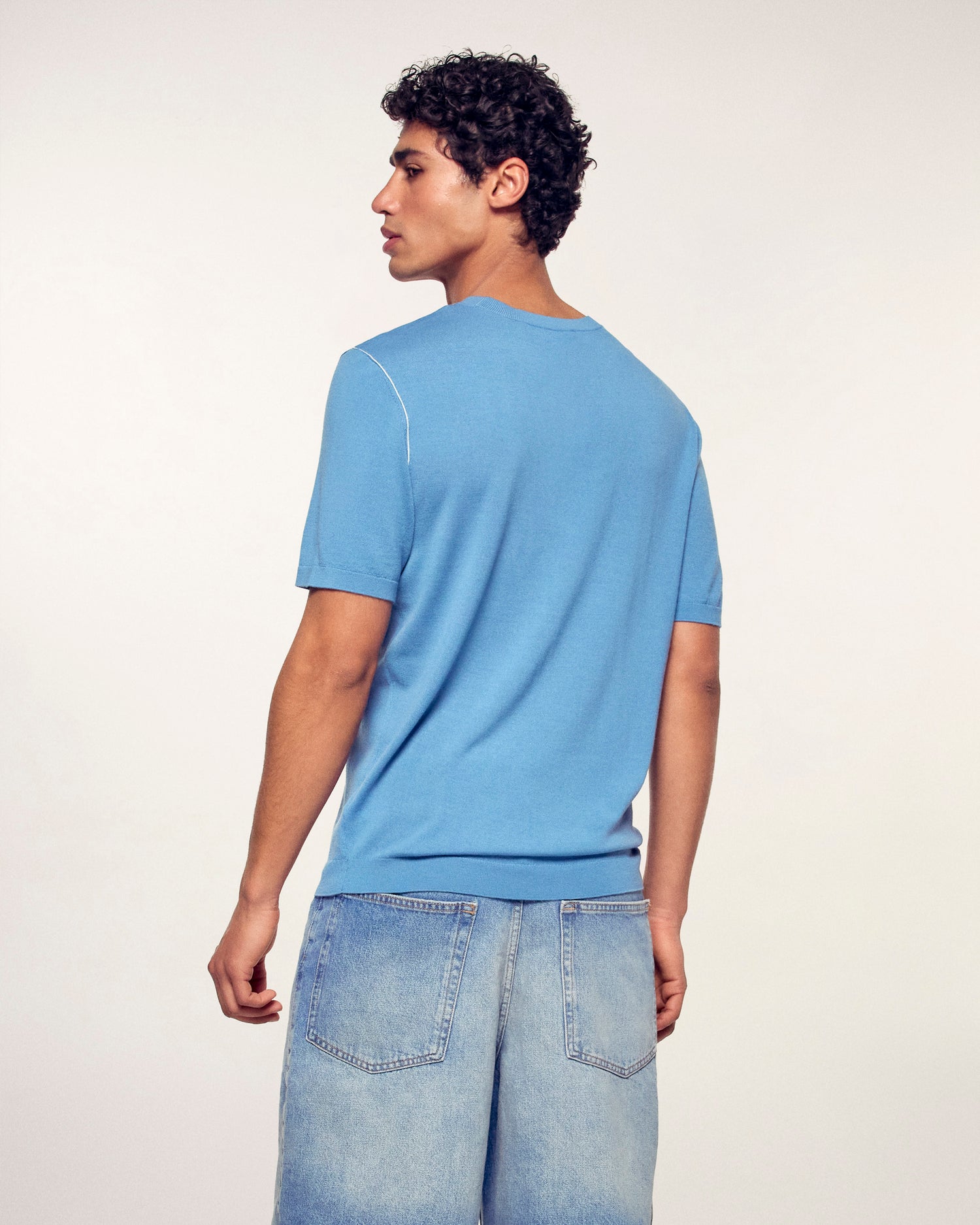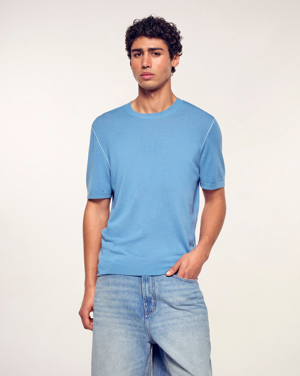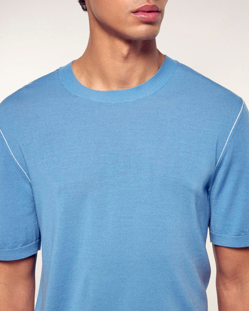 A minimalist and elegant piece made from merino wool for absolute lightness. This short-sleeve sweater stands out with its fine contrasting trims that delicately highlight the silhouette for a modern and refined style.